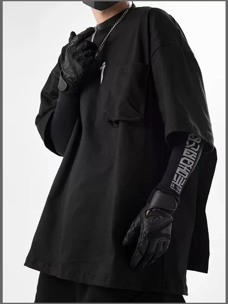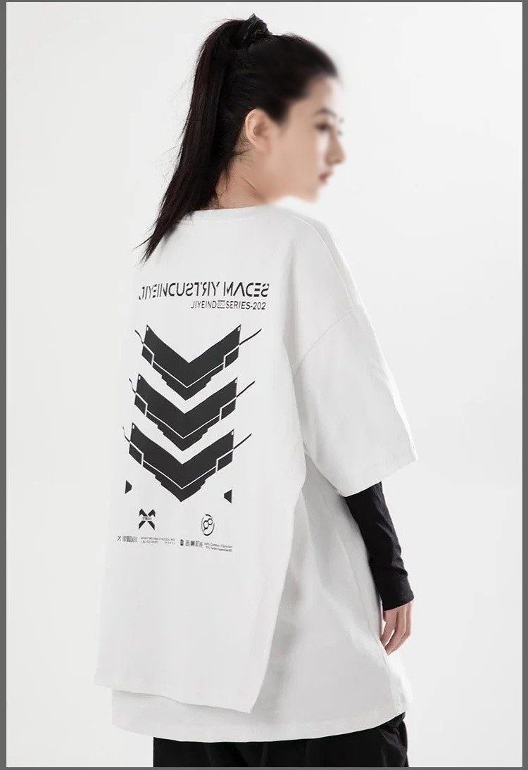 중공업 기갑 여름 루즈핏 반팔 티셔츠 상의 5부 소매 프린트 티셔츠 상의