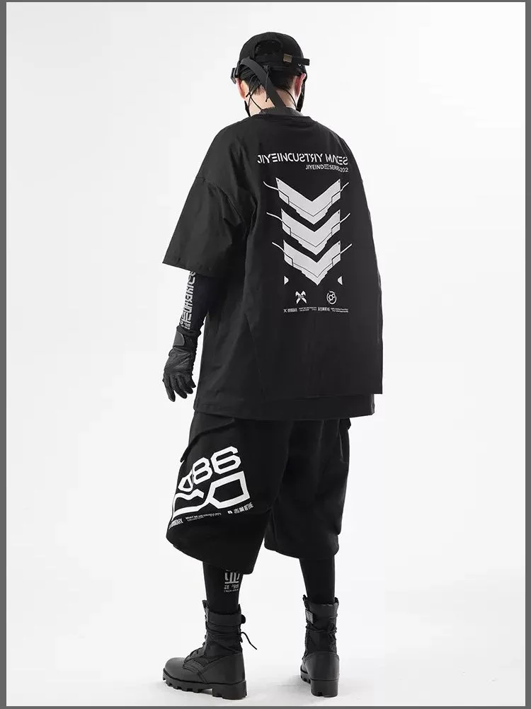중공업 기갑 프린트 루즈핏 반팔 티셔츠 착용샷