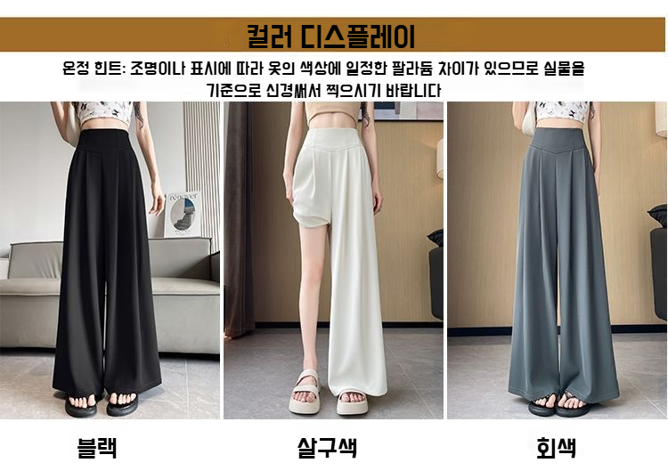 날씬해 보이는 시원한 와이드 팬츠 하이웨스트 와이드 일자 정장 팬츠 캐주얼 모래시계 와이드 팬츠 시원한 무지 빅 팬츠