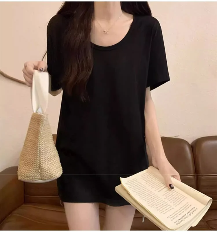 여 여름 루즈핏 순면 반팔 티셔츠 캐주얼 상의 슬림 정견 반팔 브이넥 반팔 티셔츠